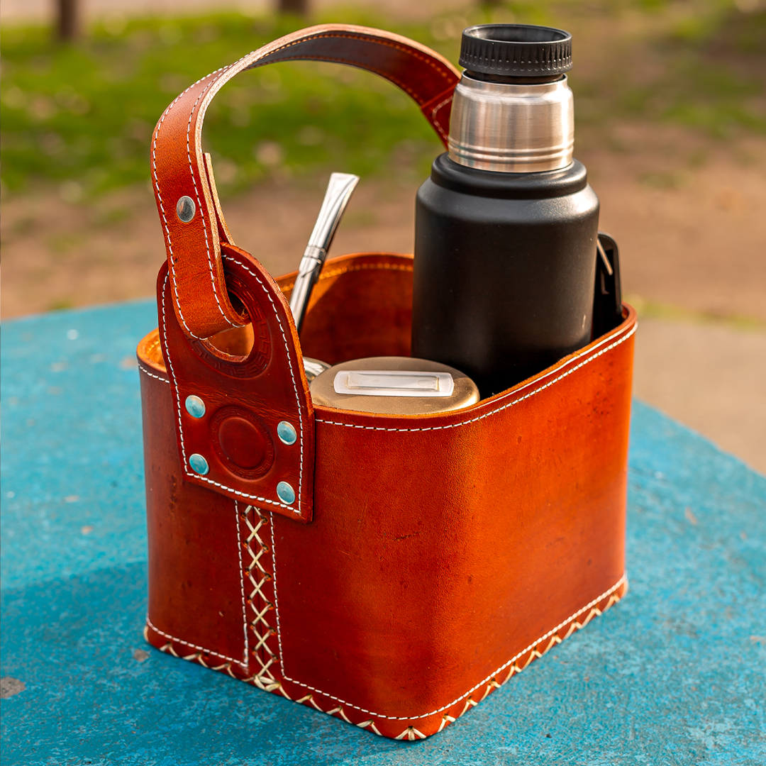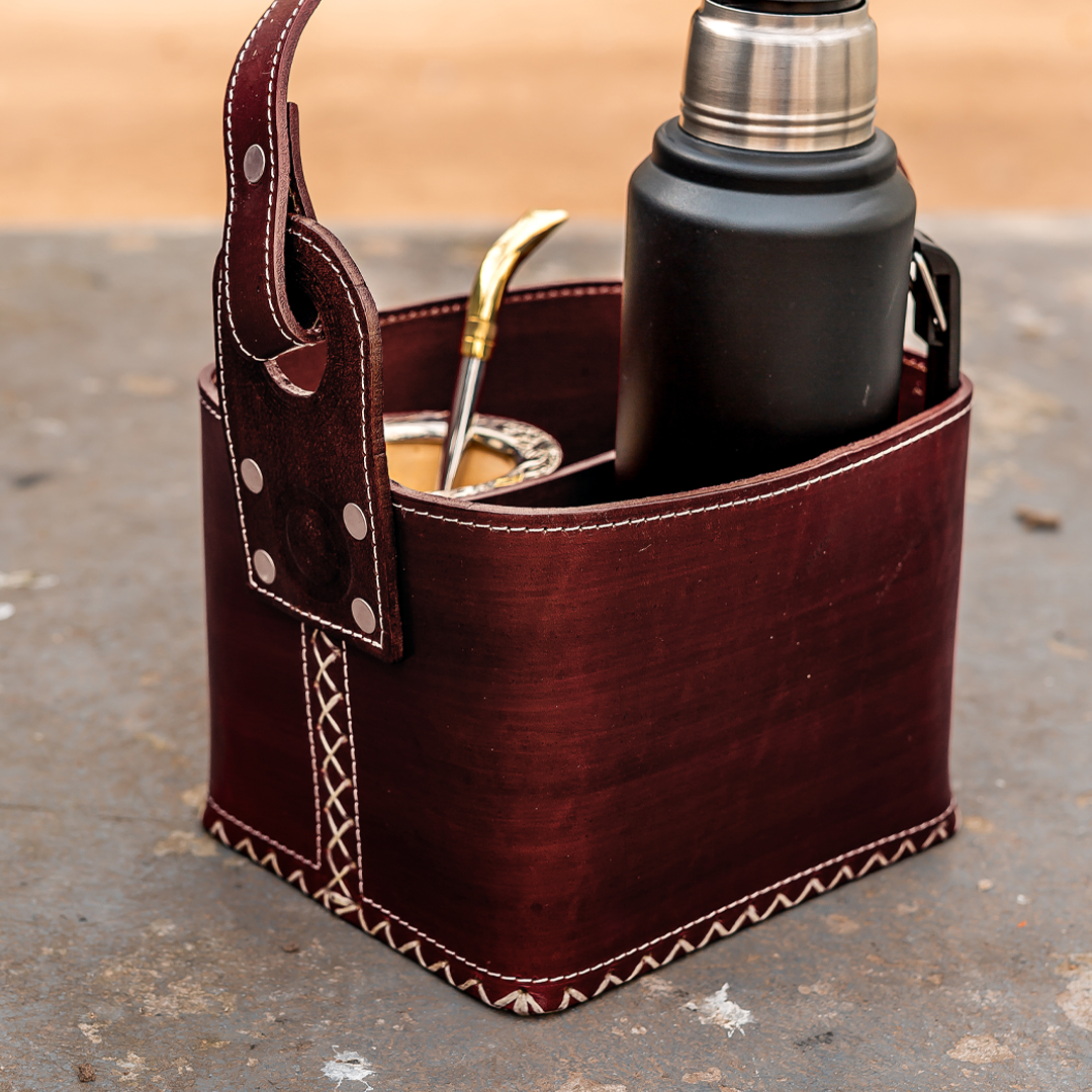 ➡️ Canasto Matero 100% cuero genuino. Con división interna y manija para llevar.