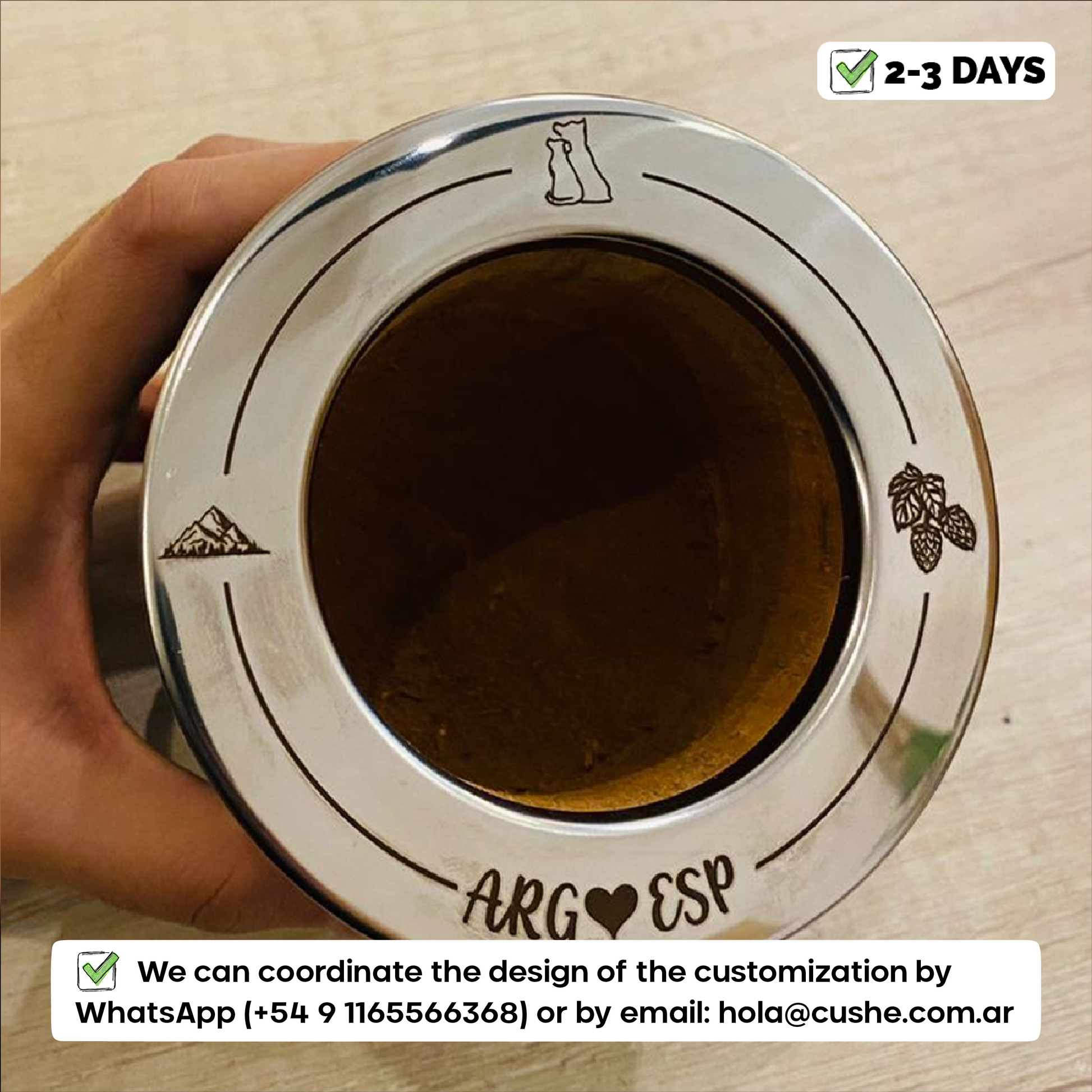 ➡️ Este item se agrega al Carrito de Compras junto con el mate deseado, y a través de nuestro e-mail o whatsapp podemos coordinar el diseño que quieras grabarle.